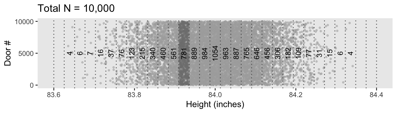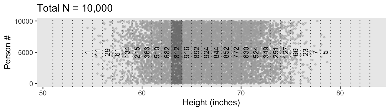 In order to recreate Figure 4.2, we need to generate the heights data with height_weight_generator(), our version of Kruschke’s HtWtDataGenerator() function, which we introduced back in Section 2.3.