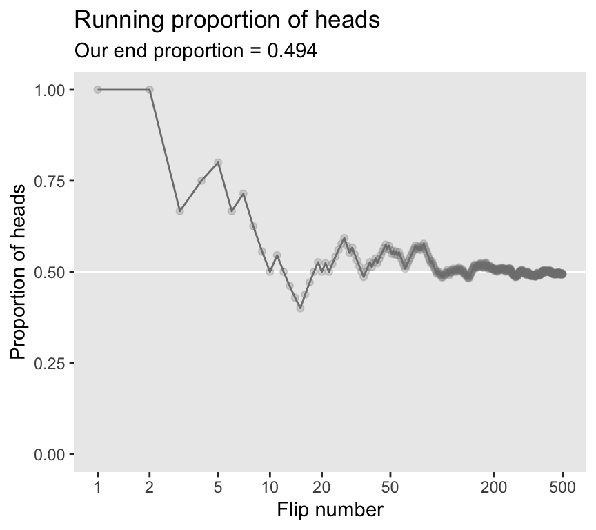 # Here we use that seed to flip a coin n times and compute the running proportion of heads at each flip.