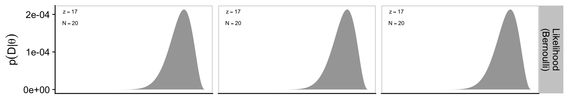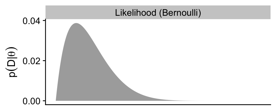 If we denote a set of possible outcomes as \(\{y_i\}\), the Bernoulli likelihood function for a set of \(N\) trials follows the form