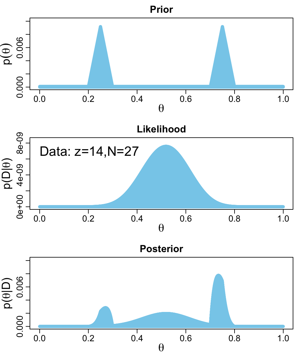 In this chapter, we use purely mathematical analysis, with no numerical approximation, to derive the mathematical form of the posterior credibilities of parameter values. To do this, we need a mathematical description of the prior allocation of credibilities…