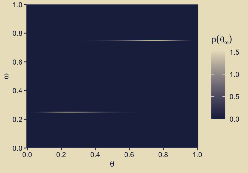 expand_grid(theta = seq(from = 0, to = 1, length.out = length)) |>