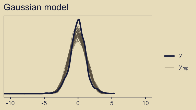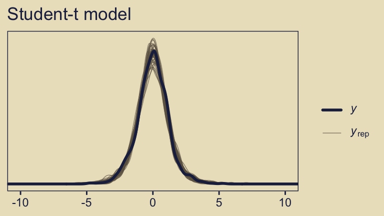Just for the sake of practice, we can also compare the models with separate posterior predictive checks using pp_check().