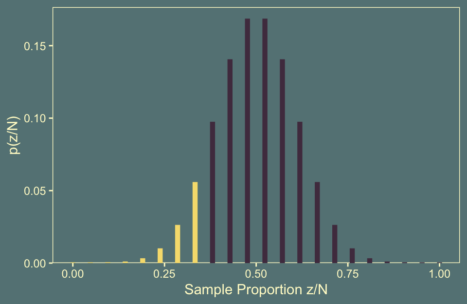 fill = `Sample Proportion z/N` >= 7 / 24)) +