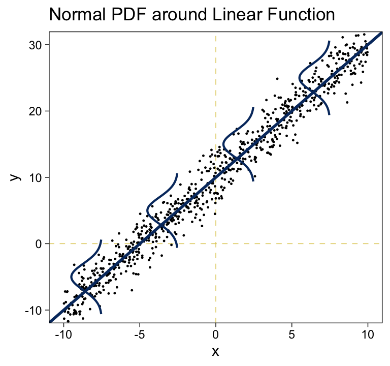 title = "Normal PDF around Linear Function") +