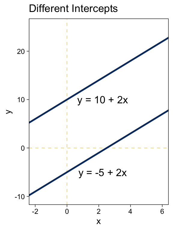 label = c("y = -5 + 2x", "y = 10 + 2x"))