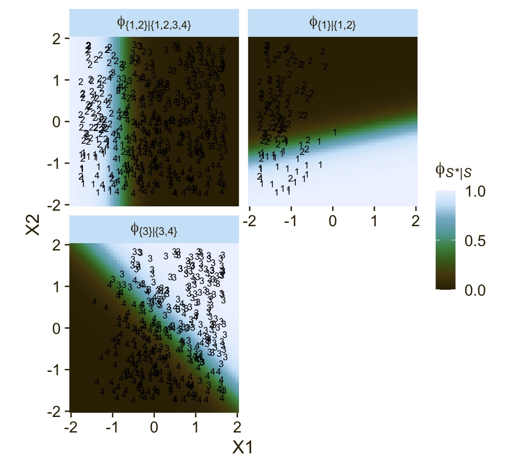 \[\begin{align*} \phi_{S^* \mid S} = \operatorname{logistic}(\lambda_{S^* \mid S}) \\ \lambda_{S^* \mid S} = \beta_{0, S^* \mid S} + \beta_{1, {S^* \mid S}} x, \end{align*}\]