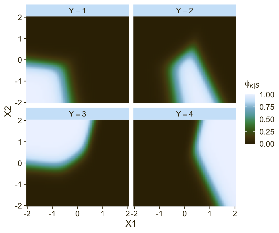 \[\phi_k = \operatorname{softmax}_S (\{\lambda_k\}) = \frac{\exp(\lambda_k)}{\sum_{c \in S} \exp(\lambda_c)}.\]