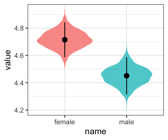 It even comes with 95% intervals, which will make the editors at APA journals happy. If you want to go beyond summary statistics and take a look at the full posterior, just set summary = F and data wrangle and plot as usual.
