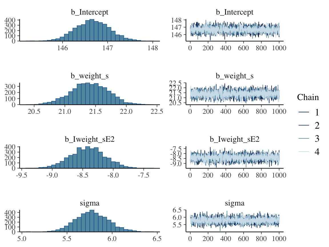 mutate(weight_s = (weight - mean(weight)) / sd(weight))Here’s the quadratic model in brms.