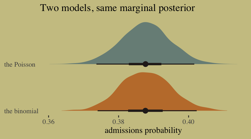 transmute(`the Poisson` = exp(b_admit_Intercept) / (exp(b_admit_Intercept) + exp(b_rej_Intercept))),