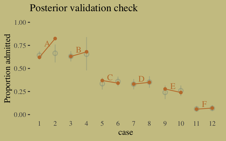 Here’s the posterior mean for the probability of admission, based on b10.binom.