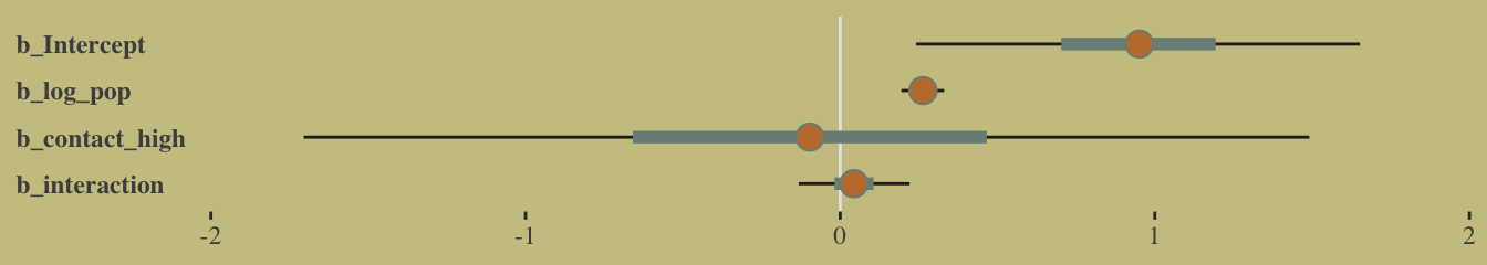fixef(b10.5) %>% round(digits = 2) Estimate Est.Error Q2.5 Q97.5