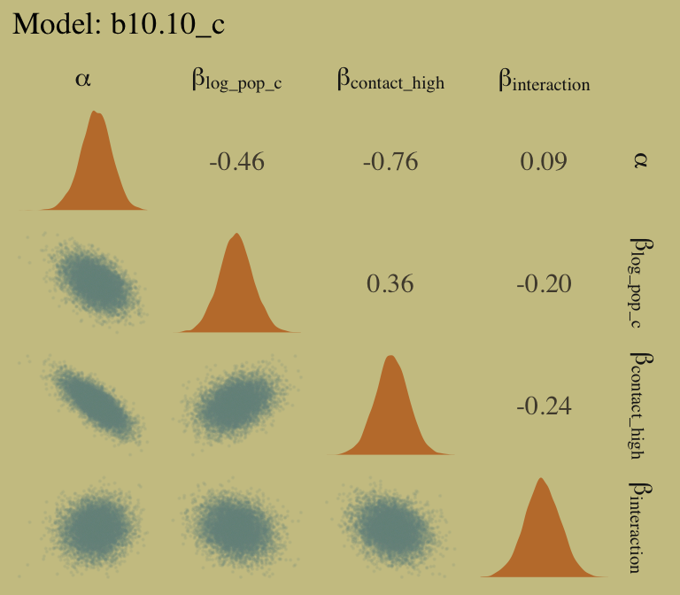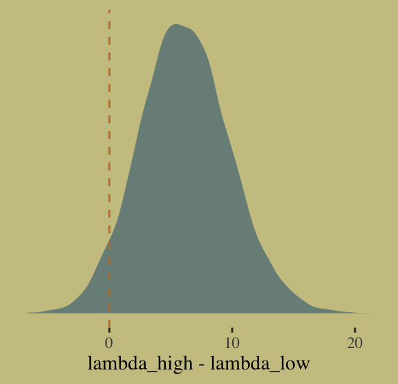 Happily, we get the same value within simulation error from model b10.pois.