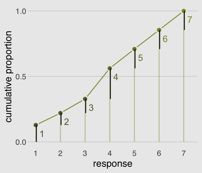 The conventional solution is to use a cumulative link function. The cumulative probability of a value is the probability of that value or any smaller value. (pp. 331–332, emphasis in the original)