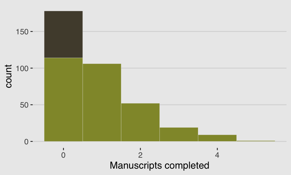 Now we’re ready to make our version of the simple Figure 11.1 histogram of our primary variable, response.