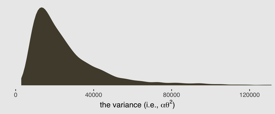 It turns out it’s possible to get the variance of a gamma distribution with \(\alpha \theta^2\). Here’s that posterior.