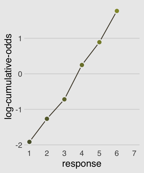 ggplot(aes(x = response, y = logit(cum_pr_k),