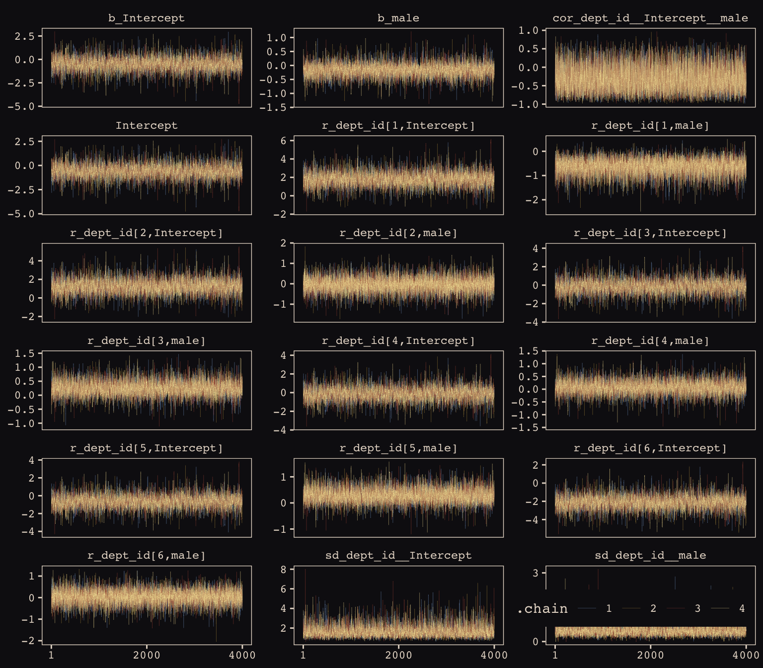 awards | trials(applications) ~ 1 + male + (1 + male | discipline),