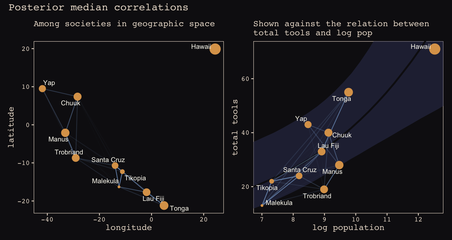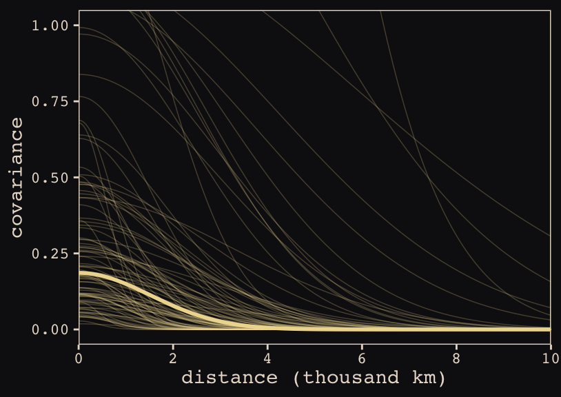 The machinery that makes such complex varying effects possible will be used later in the chapter to extend the varying effects strategy to more subtle model types, including the use of continuous categories, using Gaussian process. (McElreath, 2015, p. 388, emphasis in the original)