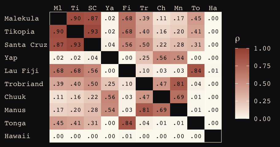 Again, these are not “data.” Figure 13.2 shows a distribution of parameters. Here’s their Pearson’s correlation coefficient.
