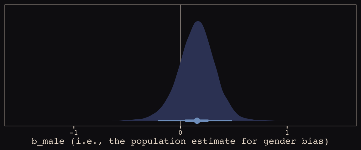 xlab("b_male (i.e., the population estimate for gender bias)") +