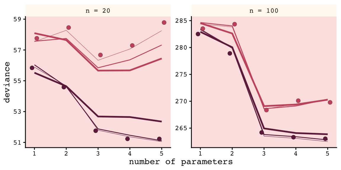 One concern with model comparison is, if we try enough combinations and transformations of predictors, we might eventually find a model that fits any sample very well. But this fit will be badly overfit, unlikely to generalize….