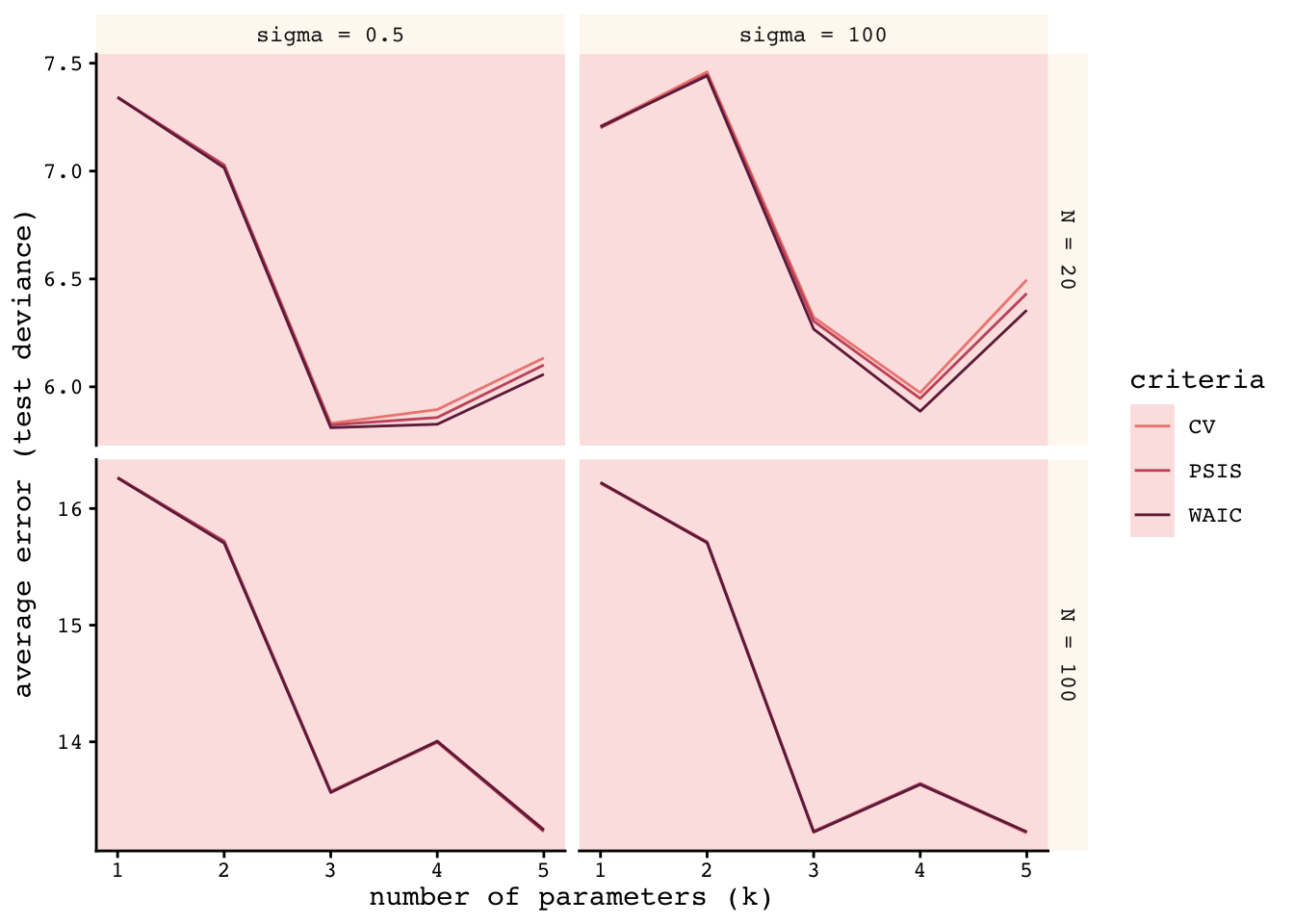 Vehtari, A., Gelman, A., & Gabry, J. (2017). Practical Bayesian model evaluation using leave-one-out cross-validation and WAIC. Statistics and Computing, 27(5), 1413–1432. https://doi.org/10.1007/s11222-016-9696-4