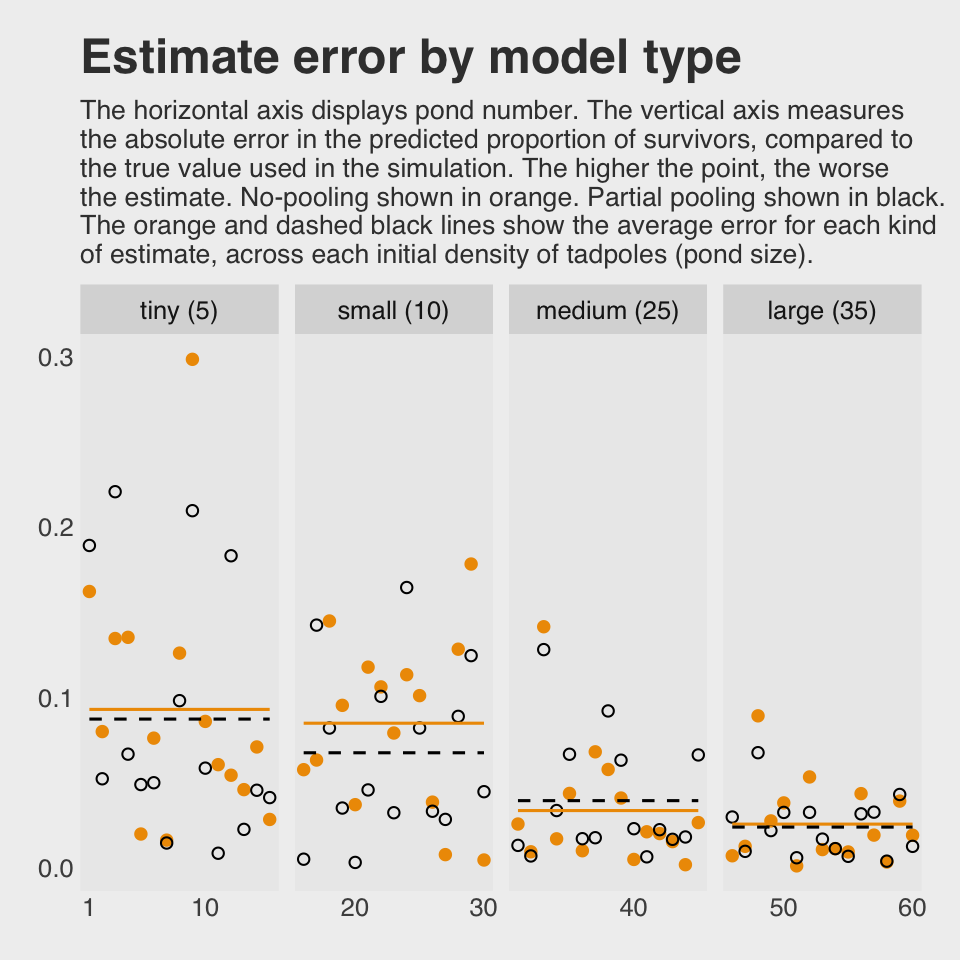 Multilevel models… remember features of each cluster in the data as they learn about all of the clusters. Depending upon the variation among clusters, which is learned from the data as well, the model pools information across clusters. This pooling tends to improve estimates about each cluster. This improved estimation leads to several, more pragmatic sounding, benefits of the multilevel approach. (McElreath, 2020, p. 400, emphasis in the original)
