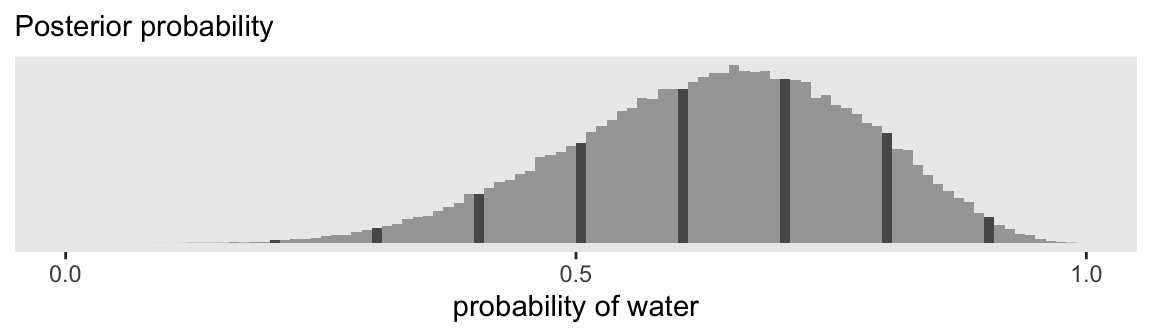 In Figure 3.7, McElreath considered the longest sequence of the sample values. We’ve been using rbinom() with the size argument set to 9 for our simulations. E.g.,